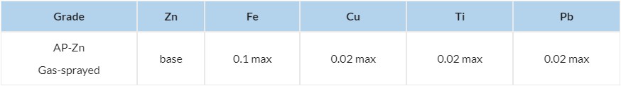 | Grade | Zn | Al | Fe | Cu | Ti | Pb |