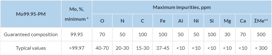 Chemical composition Mo99.95-PM.
